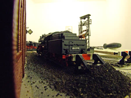 Wie früher üblich werden die Prellböcke mit Kohle und Schotter stabilisiert.