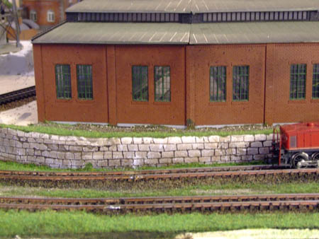 Die selbst in Gips gekratzte hintere Mauer zwischen BW und Strecke.