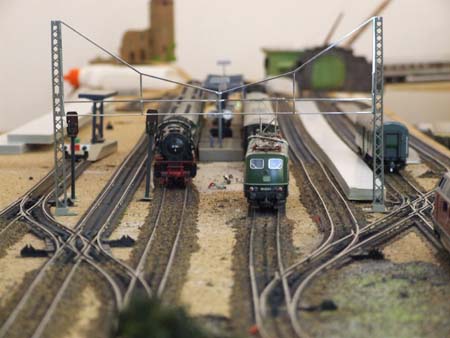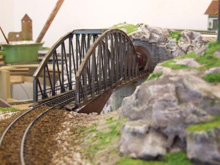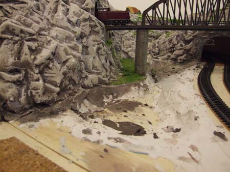Die Strecke am Viadukt wird mit Korkschotter eingeschottert.