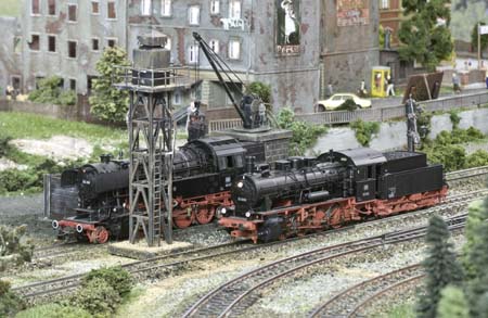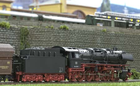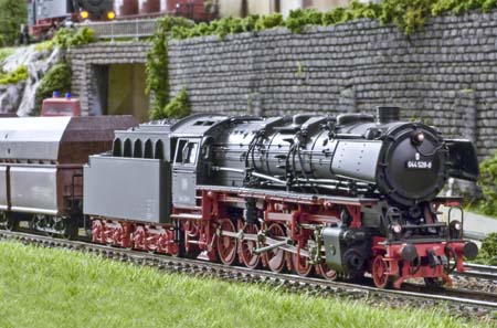 Eine 44er nimmt mit einem Kohlezug den Zugbetrieb auf