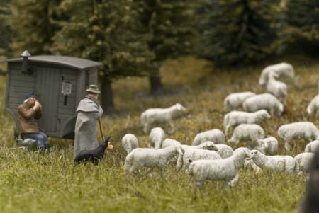Der Schäfer mit Schafen aber jetzt ohne Zaun.