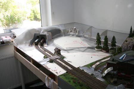 Die Spanten und der Draht für das Gelände sind angebracht.