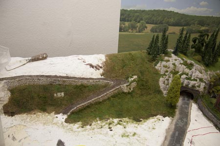 Die Tunneleinfahrt und der Hang wurden begrünt, von den Alleebäumen ist nur einer übrig geblieben.