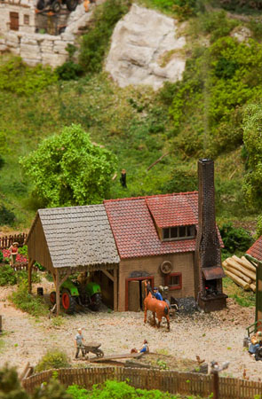 Die Schmiedeesse in der Scheune hat Glut und einen Rauchgenerator erhalten...